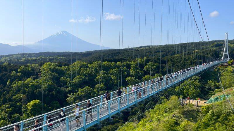 つり橋から望む富士山をメインとする絶景や、自然を生かした様々なアクティビティが充実している観光スポットで、「富士山を眺めながら長いつり橋を渡ることができる」という特別な空間から、日本はもちろん海外の観光客からも人気になっています。