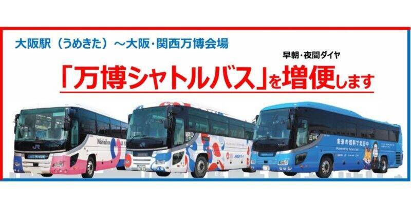 西日本ジェイアールバスが、2025年8月1日より大阪駅(うめきた)と大阪・関西万博会場を結ぶ「万博シャトルバス」の増便を発表しました。大阪駅(うめきた)発は早朝6:20の便が、大阪・関西万博会場発は夕方から夜間にかけての3便が追加されます。
