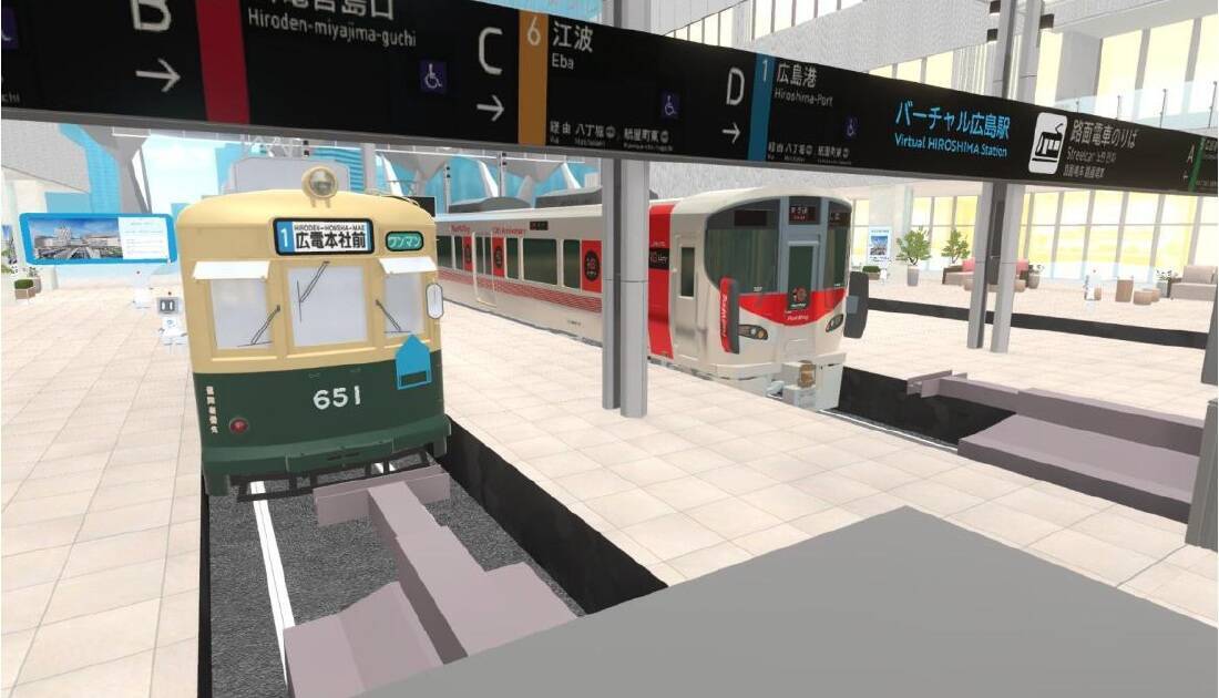 2025年8月3日、路面電車が広島駅中央アトリウム空間に乗り入れを開始します。これに先立ち、JR西日本とJR西日本コミュニケーションズは、リアルの広島新駅ビル「ミナモア」を再現・拡張したバーチャル・ステーション「バーチャル広島駅」の中央アトリウムフロアを8月1日にリニューアルオープン。