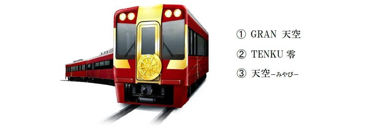 新たな観光列車の名称候補は、社内公募で寄せられた857件から選ばれた「GRAN 天空(グラン テンクウ)」「TENKU 零(テンクウ ゼロ)」「天空-みやび-(テンクウ ミヤビ)」の3案。このなかから一般投票の結果を踏まえて新名称が決定します。