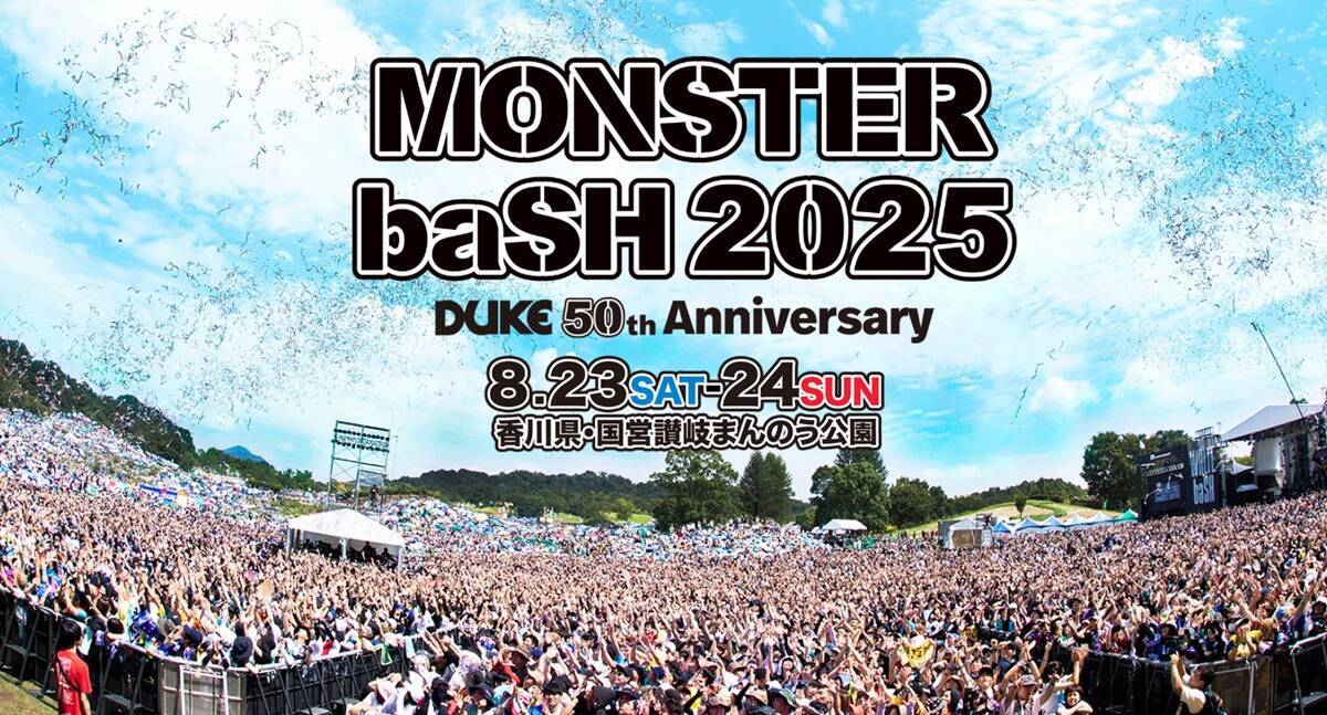 2025年8月23日(土)・24日(日)の2日間、香川県まんのう町の国営讃岐まんのう公園で、中四国最大級の野外ロックフェス「MONSTER baSH 2025」が開催されます。通称「モンバス」として親しまれ、今年で25周年を迎えるこのイベントは、2つのメインステージで人気アーティストのライブが交互に楽しめるのが大きな魅力です。