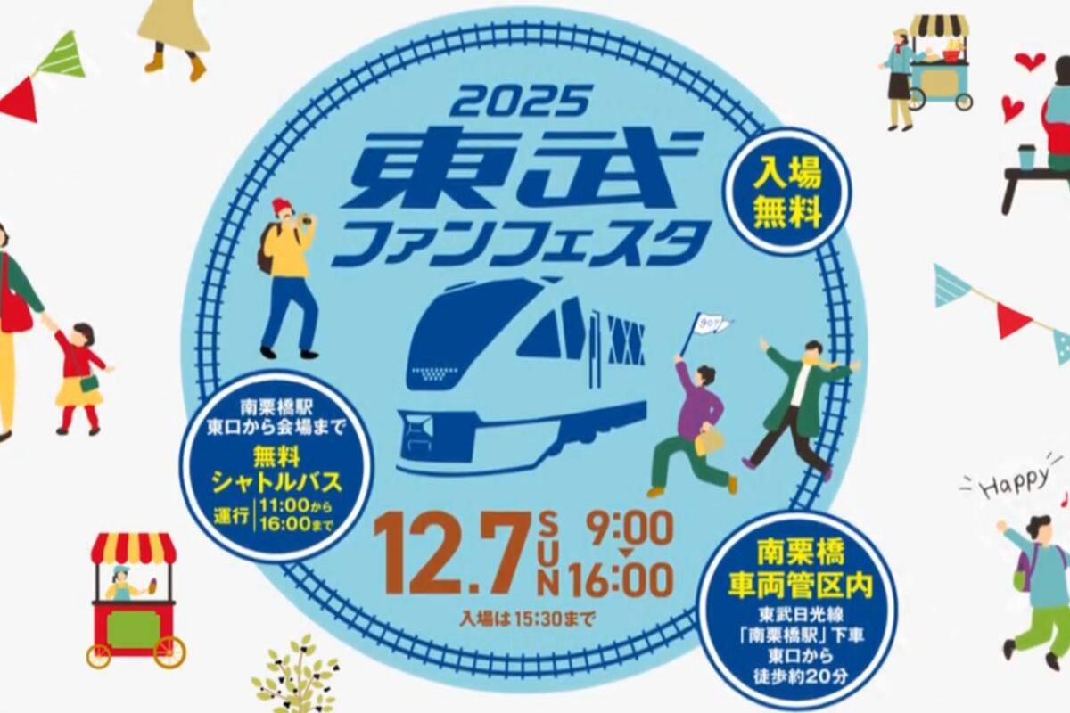 今年で19回目を迎える恒例の鉄道イベント「2025東武ファンフェスタ」が、2025年12月7日(日)に南栗橋車両管区(埼玉県久喜市)にて開催されます。入場無料で、子どもから大人まで一日中楽しめるこのイベント。