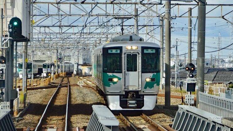 東海道本線が降りてきます。岡崎駅は地上駅です。