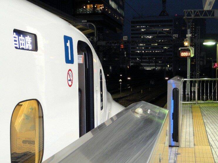 夜明け前、東京を6時ちょうどに出る新幹線のぞみ1号(1A)。