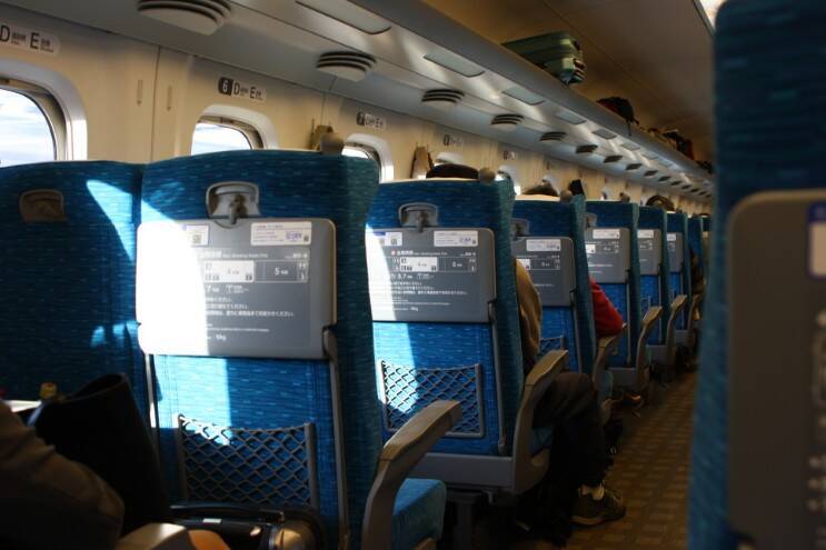 名古屋をすぎて乗車率は8割程度。2列席はほぼ埋まってる。空いてるのは3列のまんなかB席がちょっと。