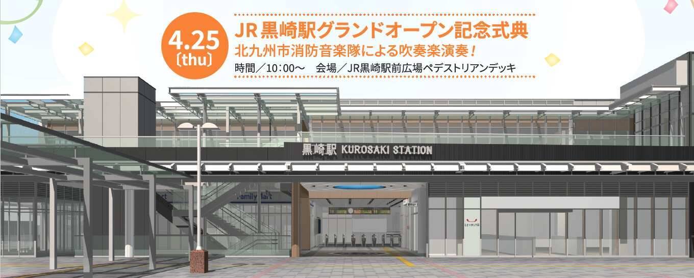 4月25日(木)にはJR黒崎駅前ペデストリアンデッキにてグランドオープン記念式典を開催します。