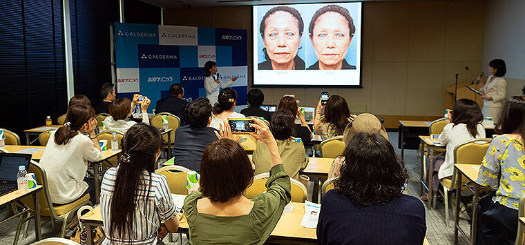 「ヒアルロン酸治療が女性を変える」をテーマに、20~50代の女性たちで満席となった会場で、その最新事情を教えてくれた。