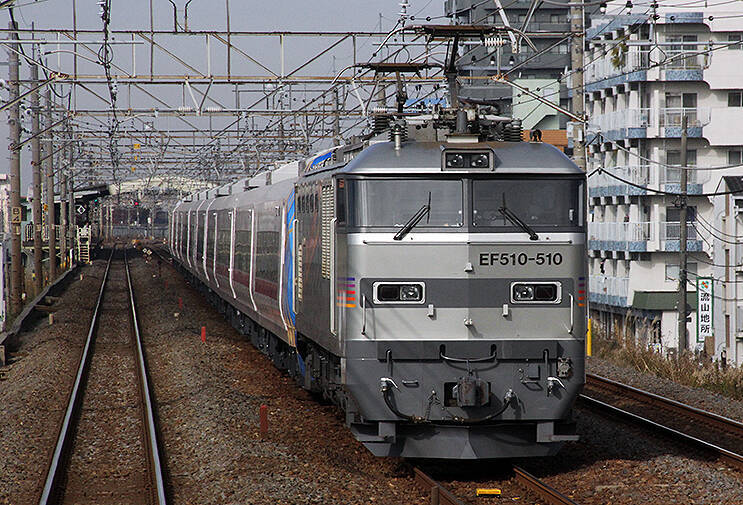 写真は、カシオペア色の電気機関車 EF510 510 カシ釜 後藤後藤に引かれて勝田方へ納品されるワンシーン。