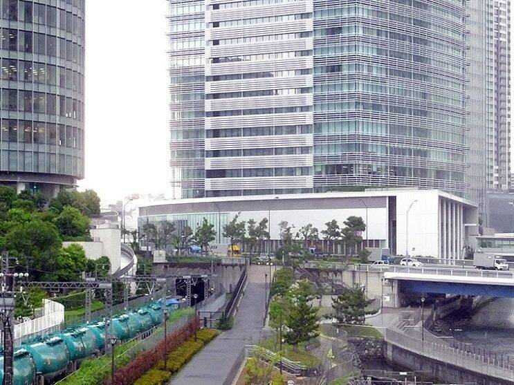 トンネルの上に立つ写真右のビルは? さらにその奥にできるビルは? 9月初旬に内覧会があるよ
