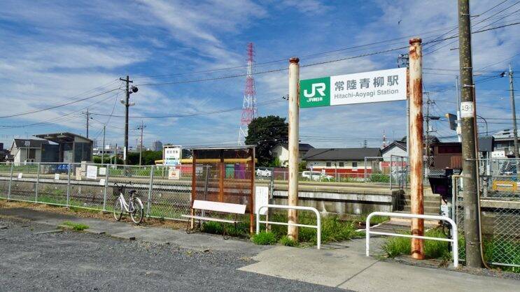 大きな跨線橋が見えます。常陸青柳駅に跨線橋はありませんが。