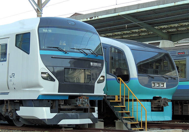 E257系2000番台NA-10編成試運転と251系RE-2編成が伊豆急下田駅留置線で並びました