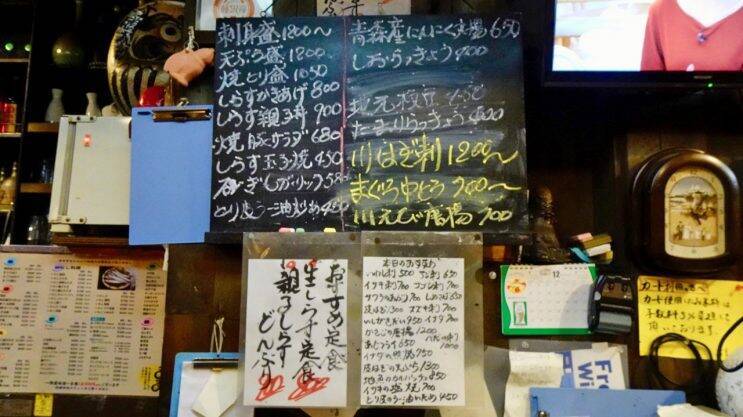 今日のおすすめ、実は入店直後の写真で、この後、最新のモノに差し替えられました。何とソコに「カメノテ」が登場していたのです。筆者は日本酒の肴で最も好きなモノを挙げろと言われれば、速攻で「フグ皮」「カメノテ」「フジツボ」と3つ並ぶ中の一品です。
