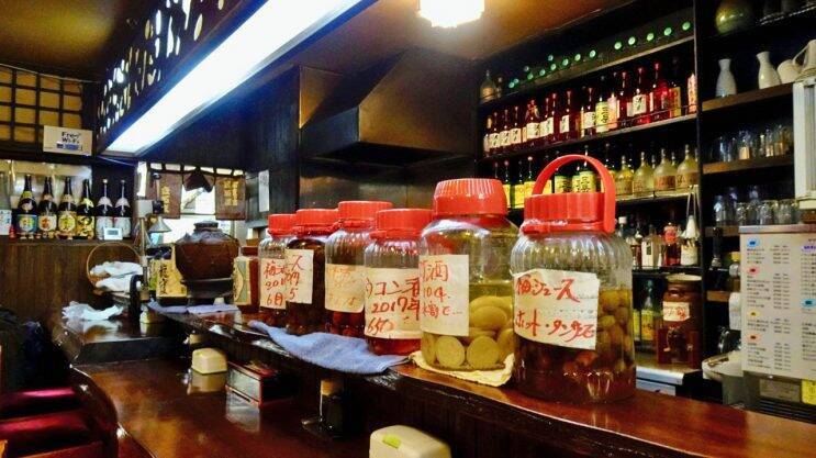 イワシと言えば銚子でイワシ専門のお店で食べたコトはありましたが、湘南のイワシは初めてです。17時の開店と同時に入ったのでまだ先客はいません。実は、この日は再撮影の後に行ったので何とクリスマス・イヴ、12月24日(火)です。いわゆる「クリぼっち」というヤツですかね。当然一人ですからカウンターに坐ります。オリジナルのウコン酒などが並んでいました。