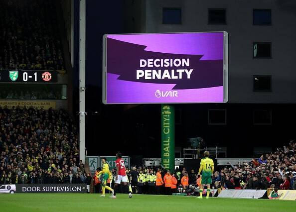 対ノリッジ戦。ユナイテッドはVARによってPKを得る photo/Getty Images