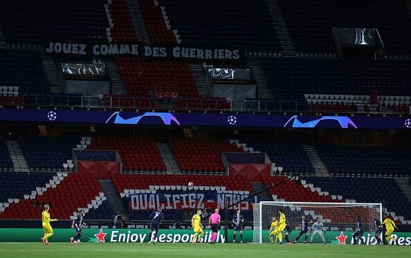 新型コロナウイルスの蔓延により、3月11日のCLラウンド16(PSG対ドルトムント)は無観客で行われた photo/Getty Images