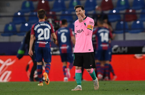 2004年にレバンテと初対戦したメッシ。その後2019-20シーズンに敗れるまで19試合無敗と、対戦成績としても相性が良かった。22試合で勝ちを逃したのは3度のみだったため、今節のドローで勝ち点3が取れない試合は4回目となってしまった。