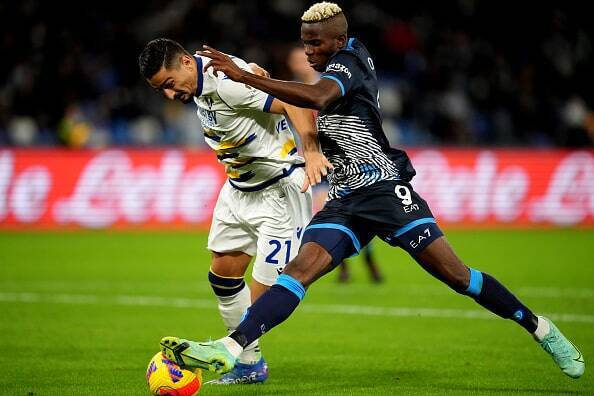 ビルドアップを封じられる試合が増えているナポリ。俊足FWオシムヘン(9番)を活かした速攻を磨き上げるべきだろう photo/Getty Images