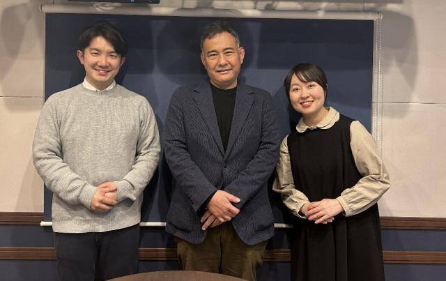 (左から)パーソナリティの小堺翔太、株式会社シケン 代表取締役 島隆寛さん、アシスタントの近藤公美(エフエム徳島)