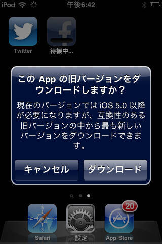 ところがこのルールが変更されたらしく、要件を満たしていないiOSデバイスでも、アプリの旧バージョンをダウンロードすることが可能になっているようです。
