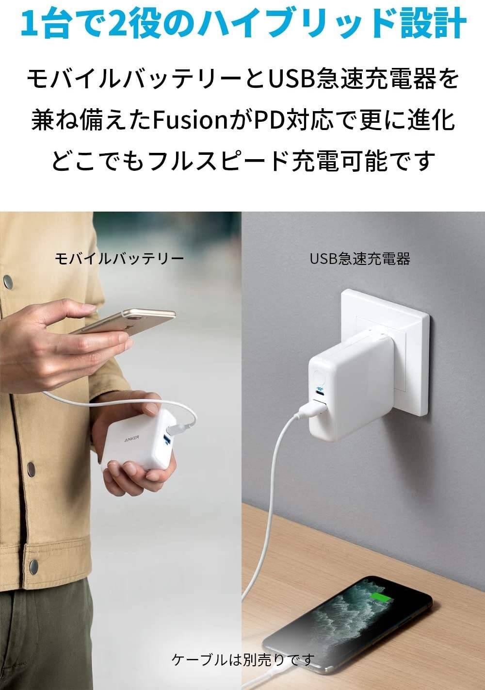 Anker PowerCore III Fusion 5000(PD対応 18W USB-C モバイルバッテリー搭載USB充電器 4850mAh) 【PowerIQ ...