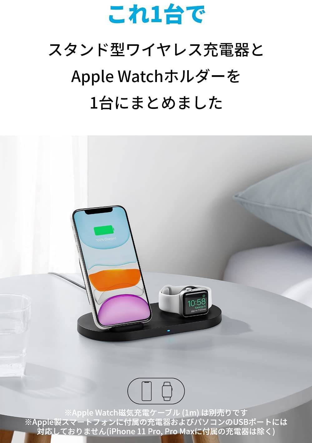 Anker PowerWave Sense 2-in-1 Stand with Watch Charging Cable Holder ワイヤレス充電器 Apple Watchホル...