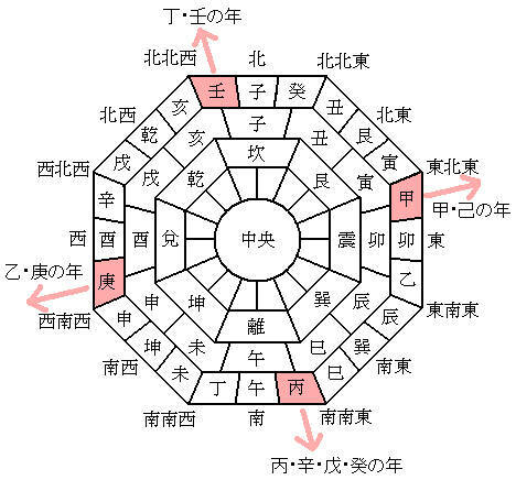 よって今年の恵方「北北西微北」は、「壬(345°)」ということになります。