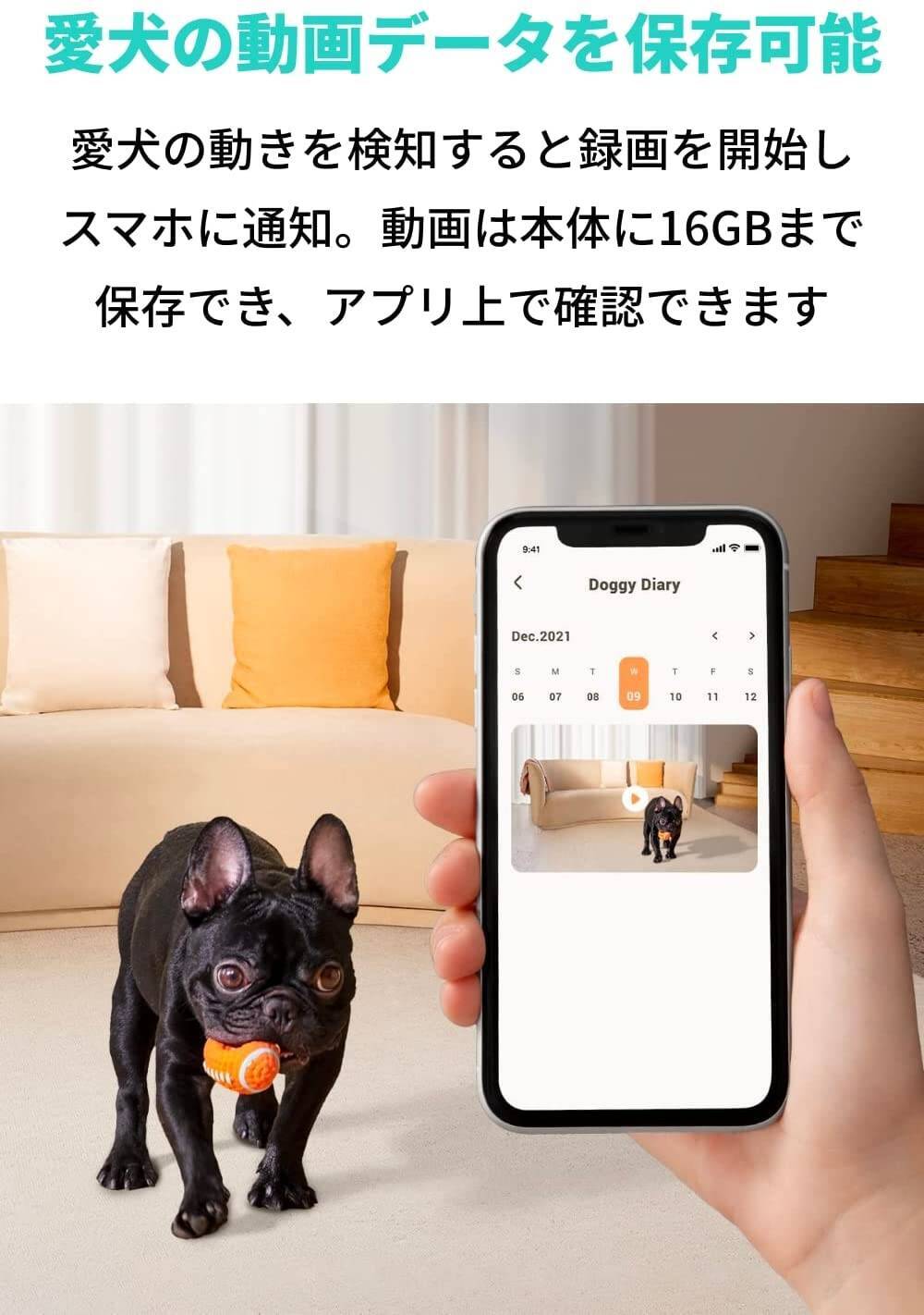 愛犬の動きを感知すると録画を開始し、スマホへも通知。