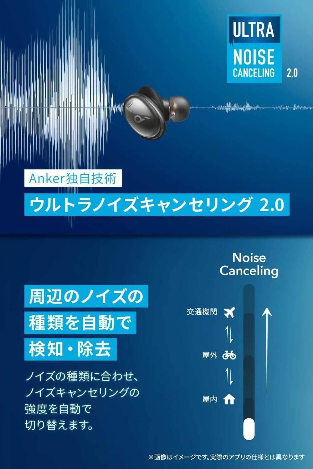 Anker独自のANC技術「ウルトラノイズキャンセリング2.0」を採用。