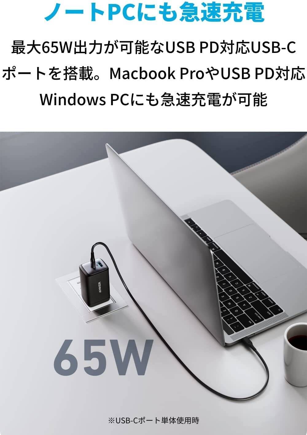 Anker 725 Charger (65W) (USB PD 65W 急速充電器)【超コンパクト設計/PowerIQ 3.0 (Gen2)搭載/PSE技術基準...
