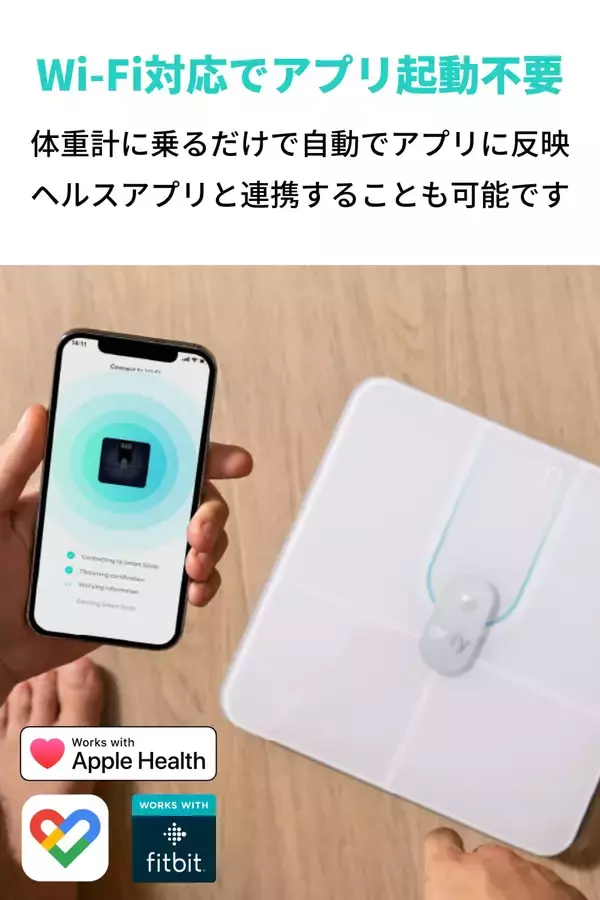 Wi-Fi接続に対応し、計測時は体重計に乗るだけでOK。面倒な毎回のアプリ起動が不要です。