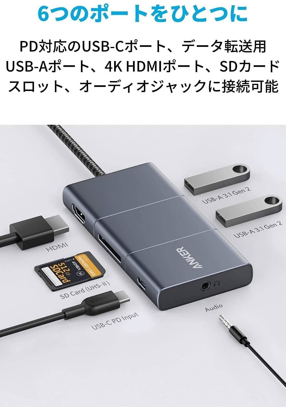【期間限定 20%OFF 1/16まで】Anker PowerExpand 6-in-1 USB-C 10Gbps ハブ 4K HDMIポート 100W USB Power ...