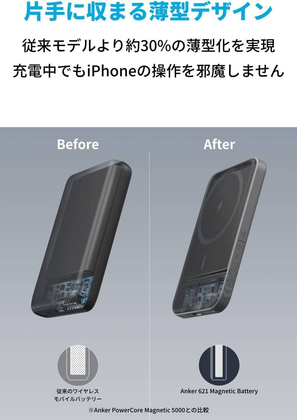 Anker 621 Magnetic Battery (MagGo) (マグネット式ワイヤレス充電対応 5000mAh コンパクト モバイルバッテ...