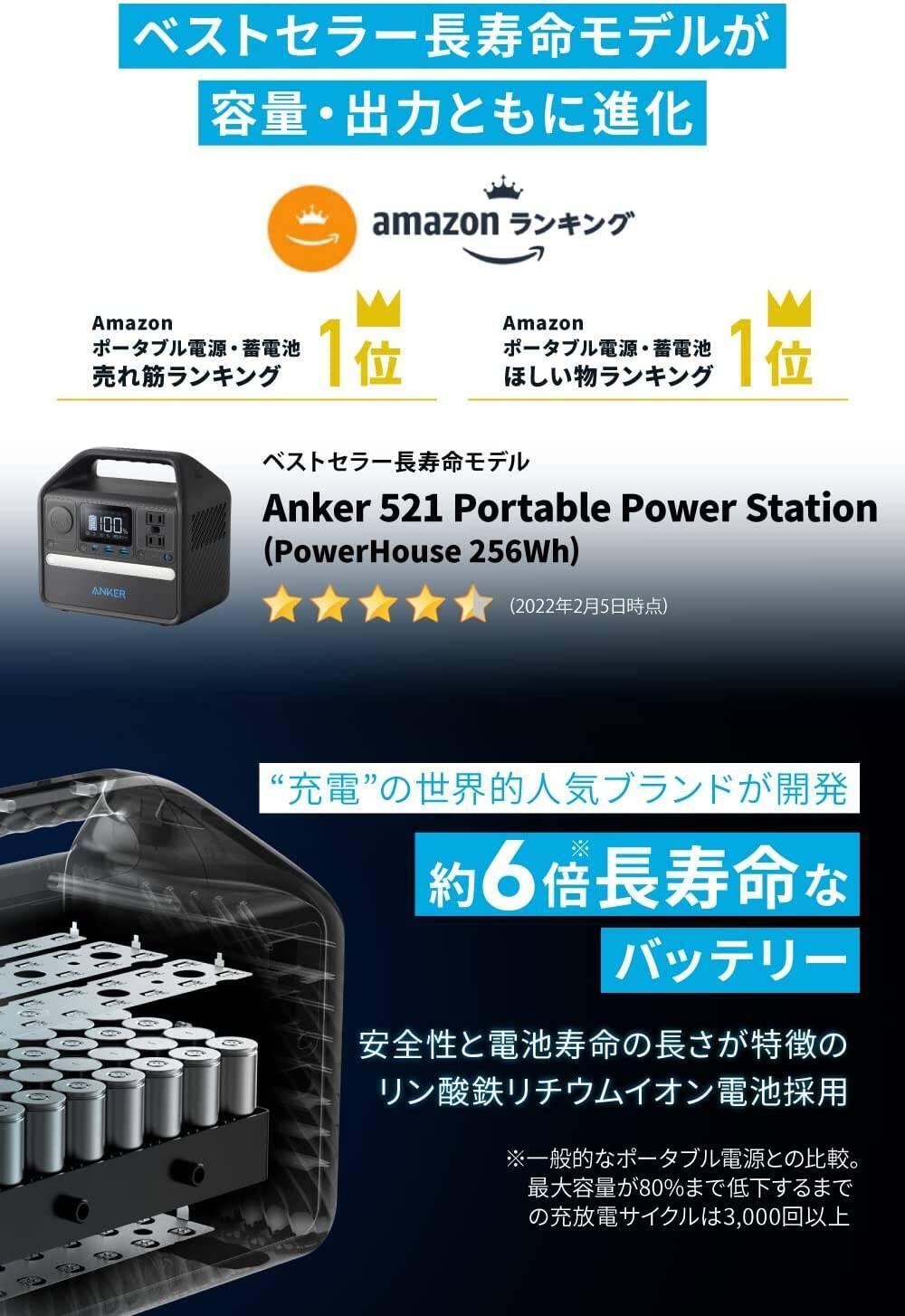 Anker 535 Portable Power Station (PowerHouse 512Wh) (6倍長寿命 ポータブル電源 大容量 バッテリー)【リ...