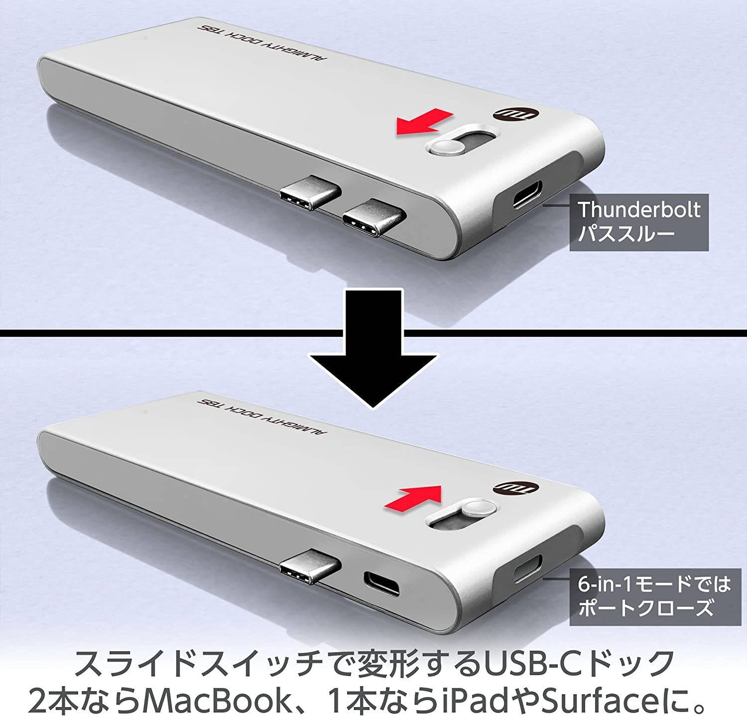 TUNEWEAR ALMIGHTY DOCK TB5|スライドスイッチでコネクタが変形するUSBドック。接続機器に合わせてコネク...