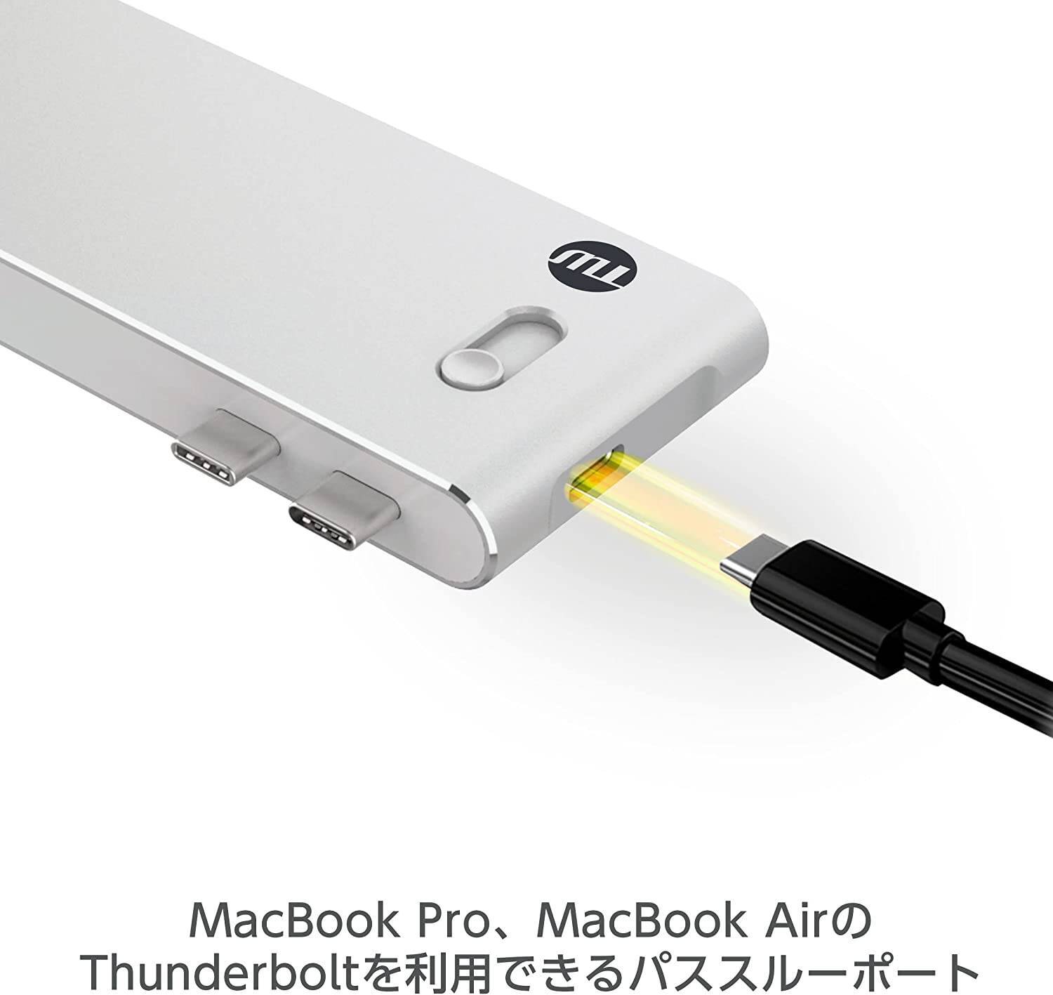 MacBook Pro/MacBook Airの場合、2本挿しにするとThunderbolt対応のパススルーも可能です。