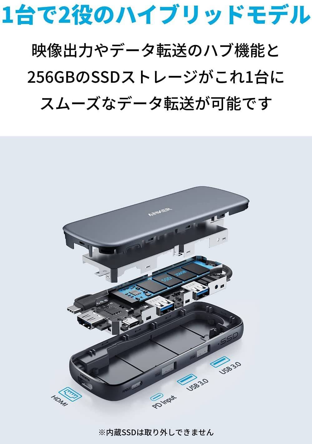 Anker PowerExpand 4-in-1 USB-C SSD ハブ (256GB) SSDストレージ内蔵 4K対応 HDMI 100W USB Power Deliver...