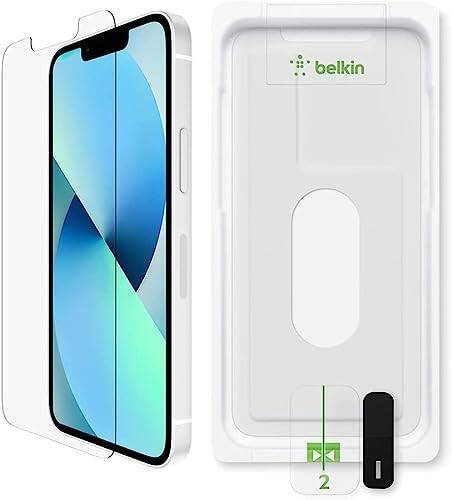 Belkin iPhone 14 / 13 / 13 Pro 用 UltraGlass保護ガラスフィルム 超強化ガラス ドイツSCHOTT製 抗菌 0.29mm 簡単取付キット付き OVA078zz