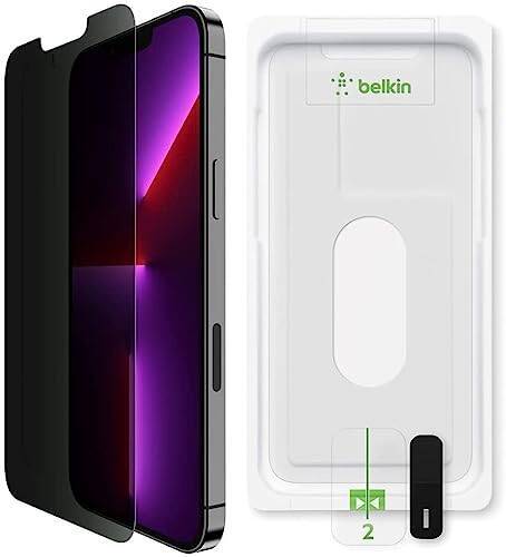Belkin iPhone 14 Pro 用 保護ガラスフィルム プライバシー保護(のぞき見防止) 強化ガラス 日本AGC旭硝子製 抗菌 極薄0.33mm 簡単取付キット付き OVA115zz