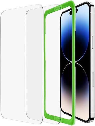Belkin iPhone 14 Pro用 保護ガラスフィルム 強化ガラス 日本AGC旭硝子製 0.33mm 簡単取付キット付き 2枚セット OVA109zz クリア