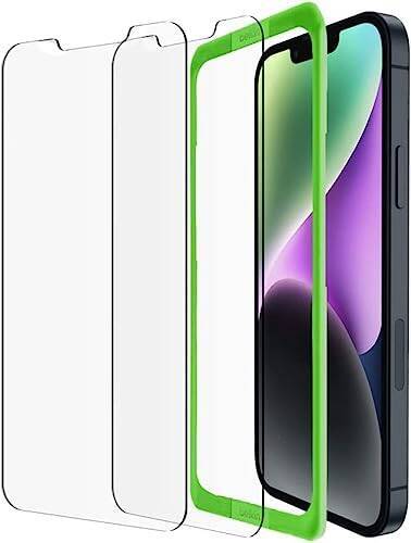 Belkin iPhone 14 / 13 / 13 Pro用 保護ガラスフィルム 強化ガラス 日本AGC旭硝子製 0.33mm 簡単取付キット付き 2枚セット OVA123zz クリア
