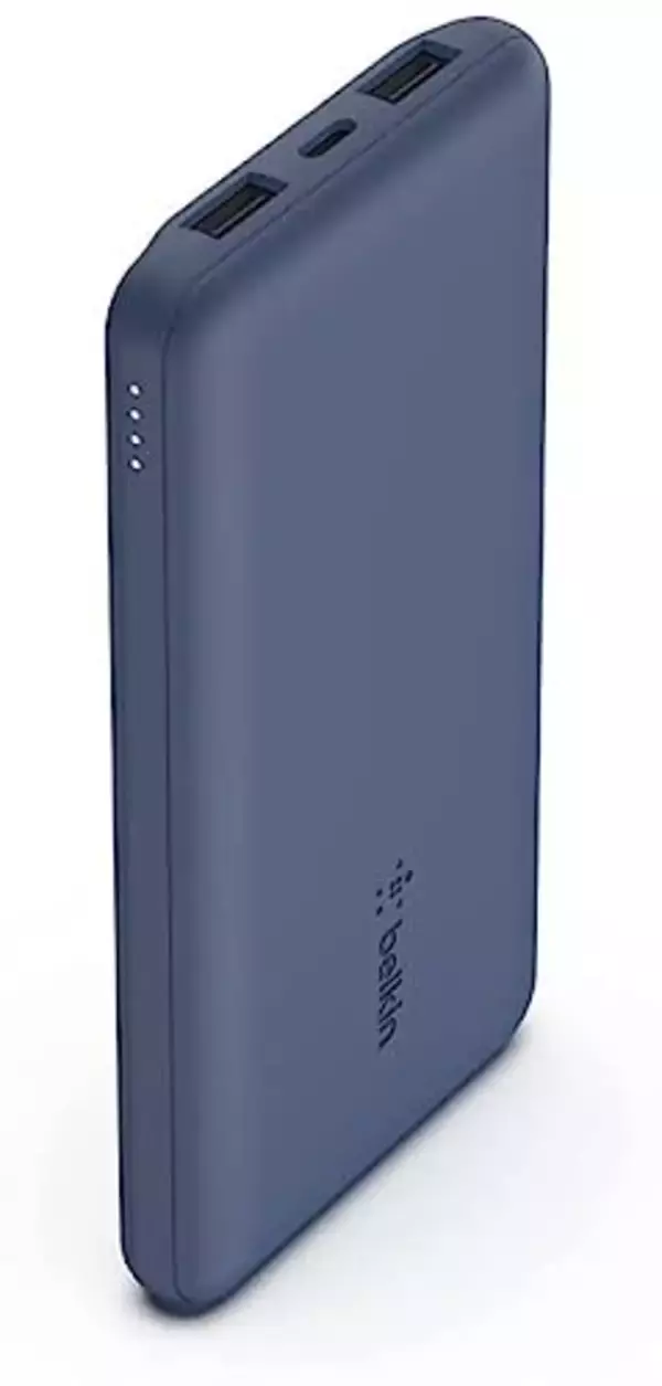 【VGP 2022受賞】Belkin モバイルバッテリー 大容量10000mAh iPhone&Android対応 最大15W 最大40時間 3台同時充電 3ポート(USB-C x 1 USB-A x 2) スリム&軽量 PSE技術基準適合 機内持ち込み可能 アウトドア/災害/緊急用の便利グッズ 充電用ケーブル付属 メーカー保証2年 ブルー BPB011btBL