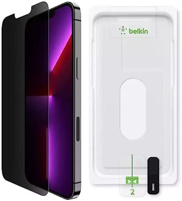 Belkin iPhone 14 Plus / 13 Pro Max 用 保護ガラスフィルム プライバシー保護(のぞき見防止) 強化ガラス 日本AGC旭硝子製 抗菌 0.33mm 簡単取付キット付き OVA082zz