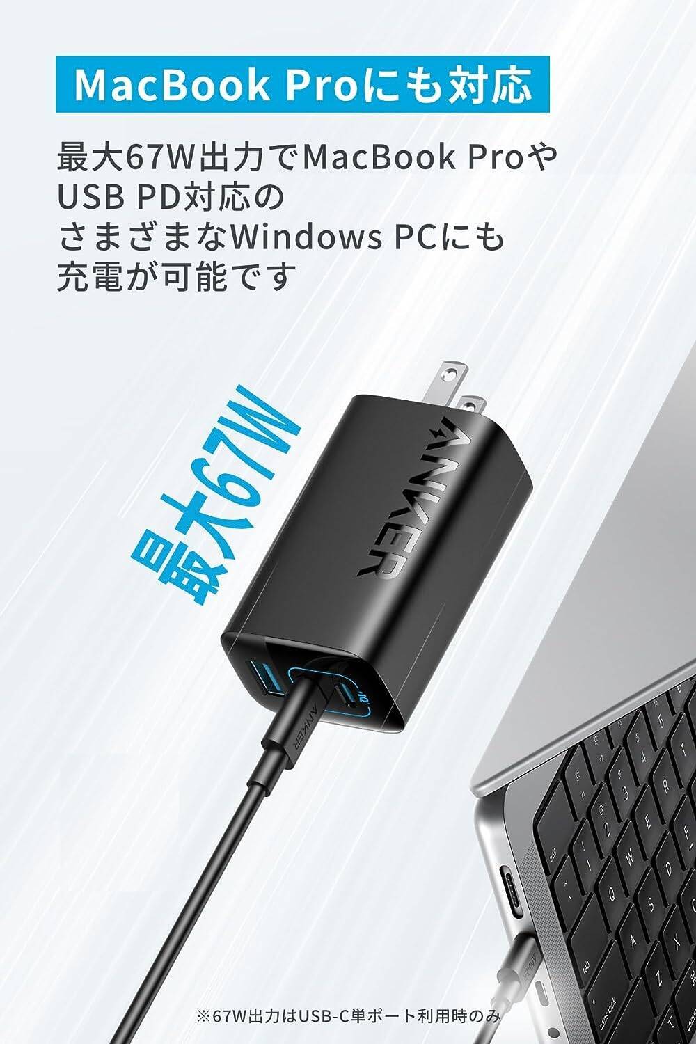Anker Charger (67W, 3-Port) 【USB PD対応/PSE技術基準適合/折りたたみ式プラグ】MacBook PD対応Windows P...