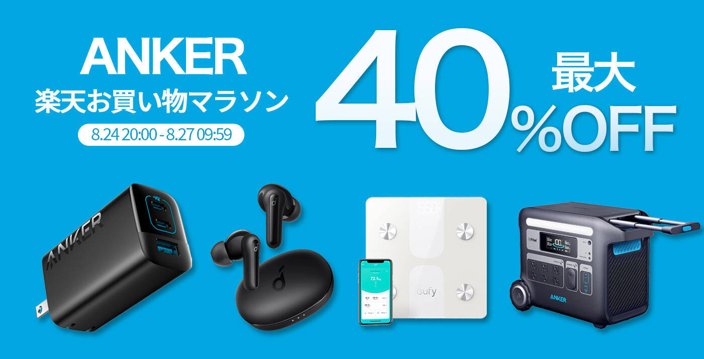 【最大40%OFF】楽天お買い物マラソンでAnker製品がクーポンセール中 (8月27日9時まで)
