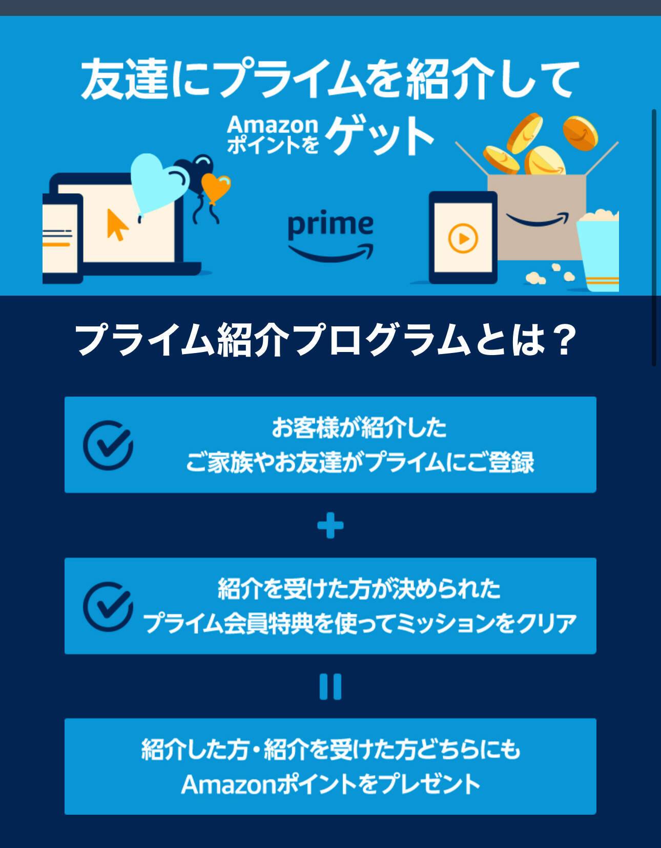 紹介したプライム会員にも1,000ポイントが付与されるので、知り合いや友達でプライム会員がいる場合は、確認してみることをお勧めします。