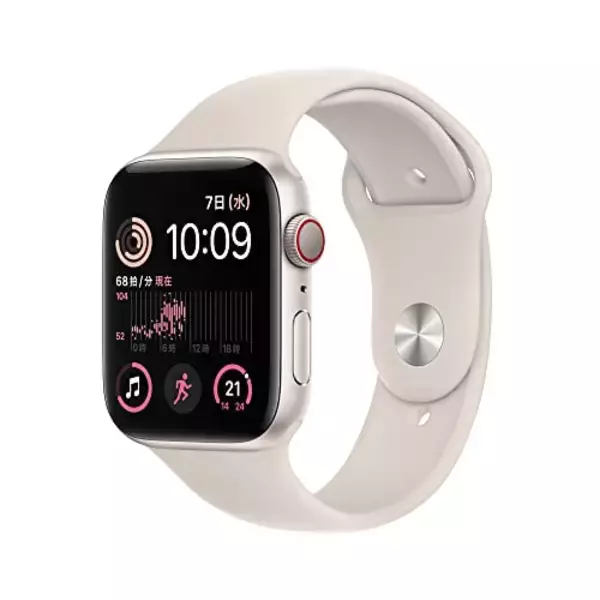 Apple Watch SE(第2世代) GPS + Cellularモデル、 44mmケース スターライトアルミニウムケースとスターライトスポーツバンド レギュラーを組み合わせたスマートウォッチ。フィットネストラッカーと睡眠トラッカー、衝突事故検出、心拍数のモニタリング、Retinaディスプレイ、耐水性能
