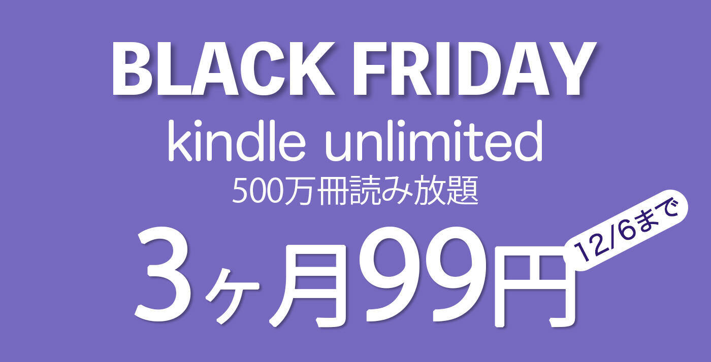 【96%OFF】Kindle Unlimitedで「ブラックフライデー:3か月99円キャンペーン」が開催中