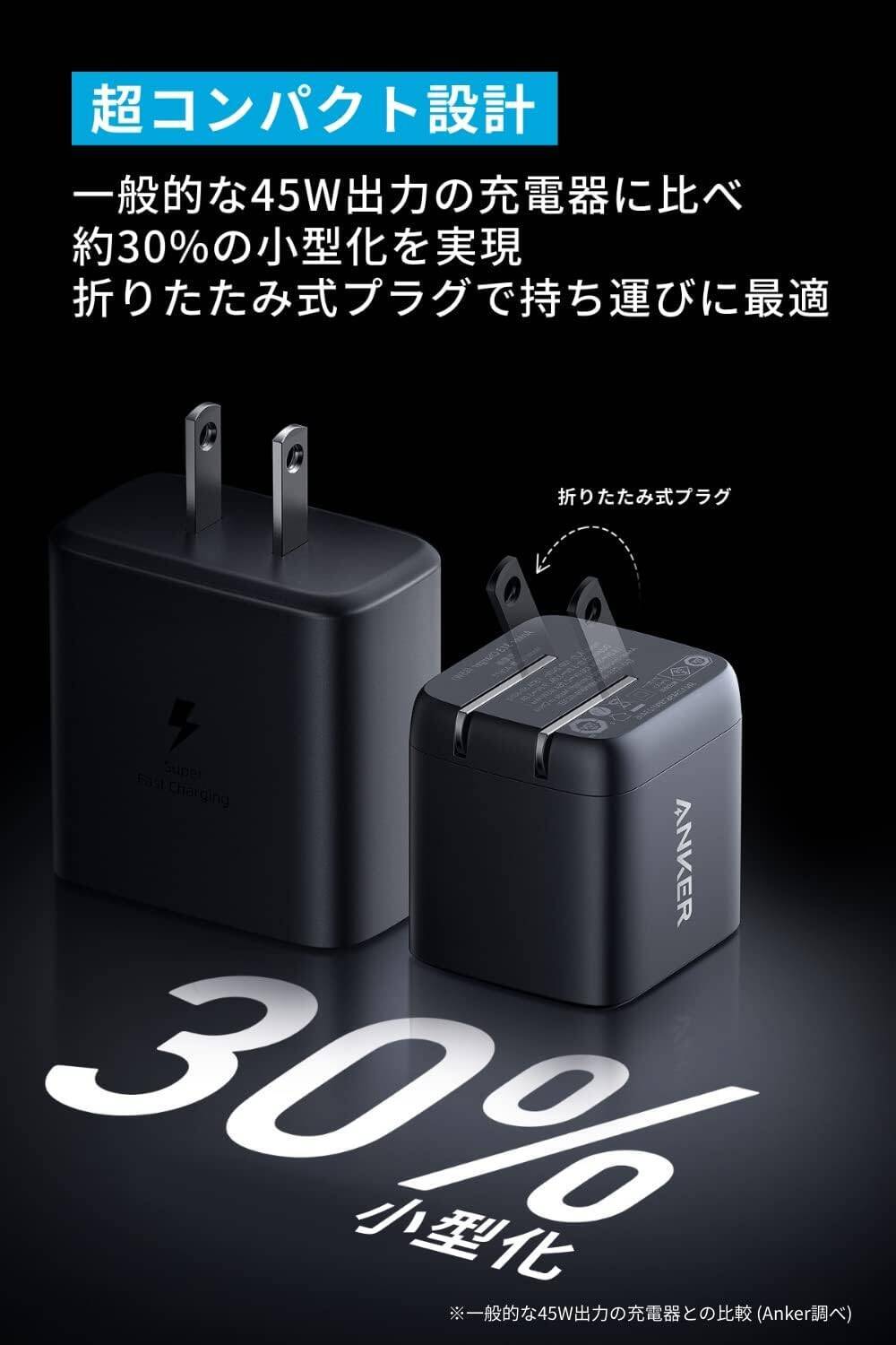 Anker 313 Charger (Ace, 45W) (USB PD 充電器 USB-C) 【GaN(窒化ガリウム) II採用/USB PD対応/PPS規格対応...