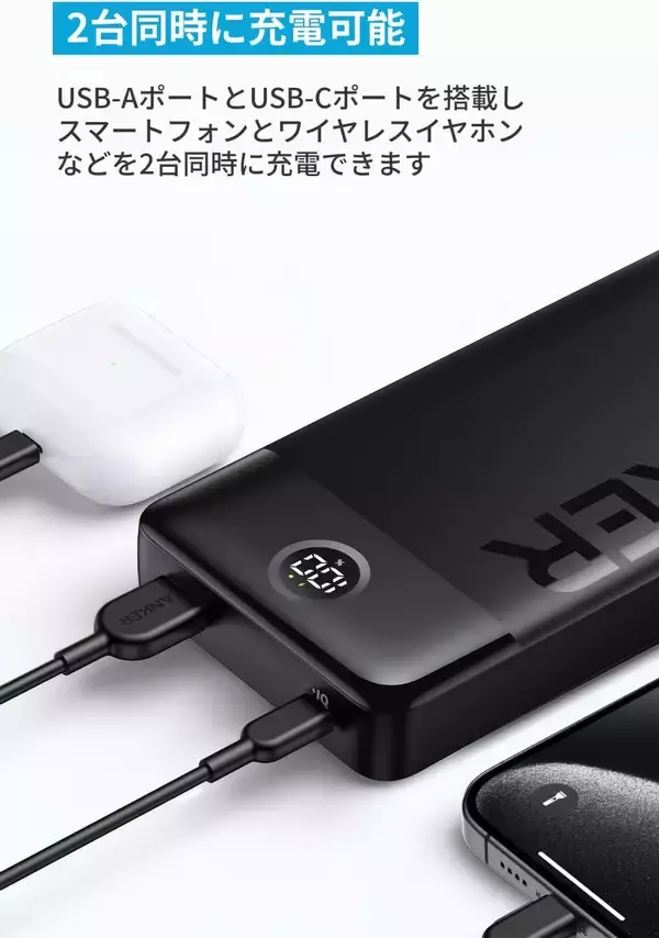 「【21%還元】安心の超大容量「Anker Power Bank (20000mAh, 15W, 2-Port) 」がセール中」の画像