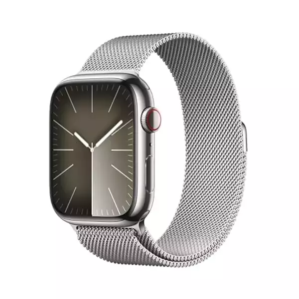 Apple Watch Series 9(GPS + Cellularモデル)- 45mmシルバーステンレススチールケースとシルバーミラネーゼループ